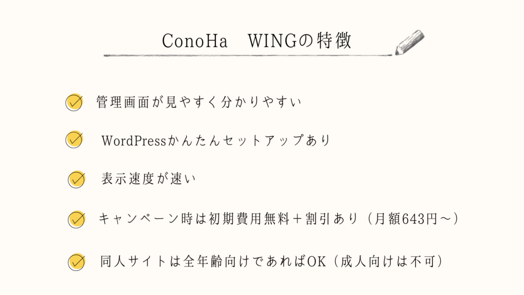 「完全に全年齢向けだから問題なし!」という方なら、ConoHa WINGは表示速度も速く、管理画面も使いやすいので、初心者にはおすすめです。