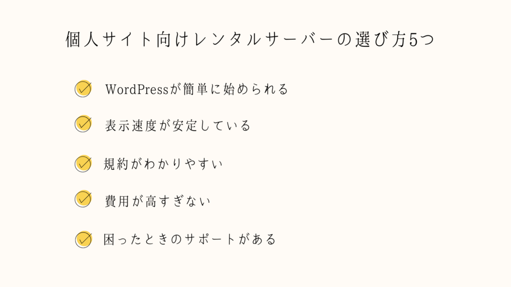 個人サイトを長く安心して運営するためには、レンタルサーバー選びに明確な基準を持つことが大切です。